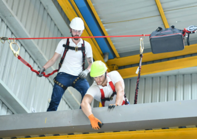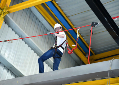 - El sistema tiene 4 juntas tóricas de acero para permitir al usuario conectar fácilmente la cuerda de su arnés a la línea de vida.